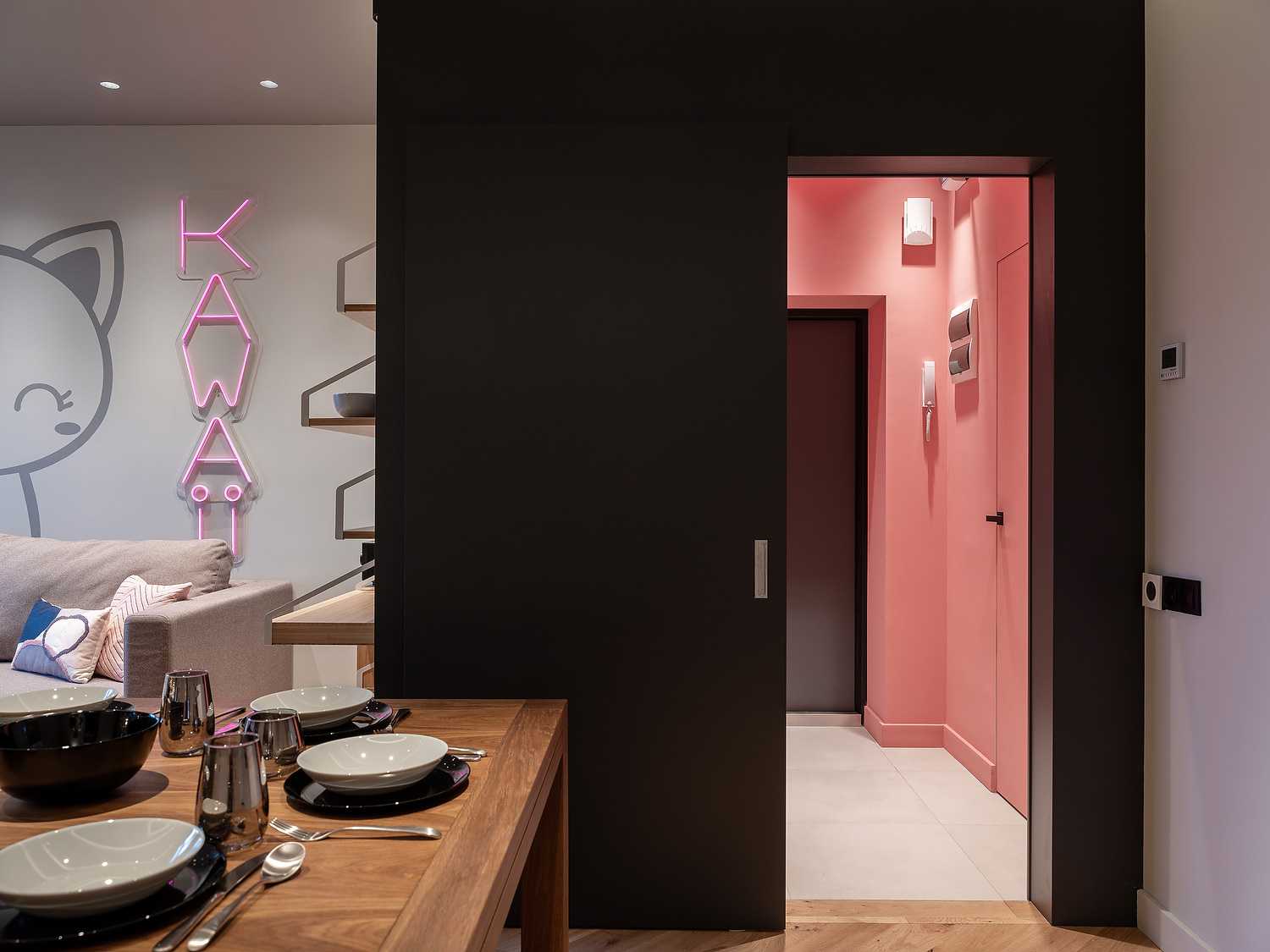 Проект «Кавайная гостиная» - задумка Пётра Лукьянова и Кирилла Устинова – основателей архитектурного бюро ANCconcept. По концепции авторов после переделки должны были получиться три отдельные зоны: прихожая, кухня и гостиная. При этом нужно было оставить максимальное количество открытого пространства. Для этих целей были снесены стены и создано специальное зонирование. В итоге – концепция удалась, а интерьер получился оригинальным за счет интересных декоративных приемов. В качестве красивого и функционального решения для оформления окна была выбрана кассетная система горизонтальных деревянных жалюзи Venus от компании AMIGO. Такой вид солнцезащиты позволяет довольно тонко регулировать уровень поступления естественного света в помещение. Удобное и простое управление горизонтальными жалюзи позволяет легко поднимать, опускать и фиксировать систему на любом необходимом уровне. Жалюзи установлены непосредственно на створку, а ламели плотно прилегают к стеклу, что сохраняет пространство у окна. В качестве материала для жалюзи были выбраны ламели из натурального бамбука. Цвет: отбеленный. Фактура натуральных материалов прекрасно смотрится на окне и выделяется при попадании солнечных лучей на ламели.
