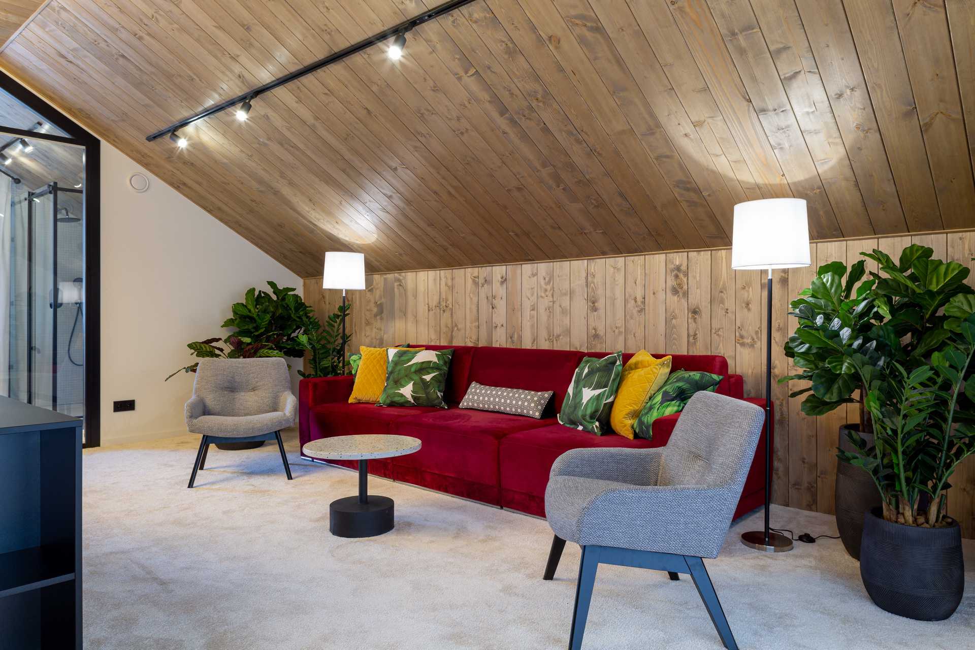 Специально для программы «Дачный ответ» дизайнер Анна Демушкина разработала оригинальный проект переделки мансарды. Весь проект решен в постельной цветовой гамме, присутствует множество теплых и мягких фактур. Что касается планировки, то в обновленном пространстве появилась уютная гостиная с небольшой кухонной зоной и отдельный санузел, который отделен стеклянной перегородкой. Кстати на перегородки установлены шторы Плиссе от AMIGO©️