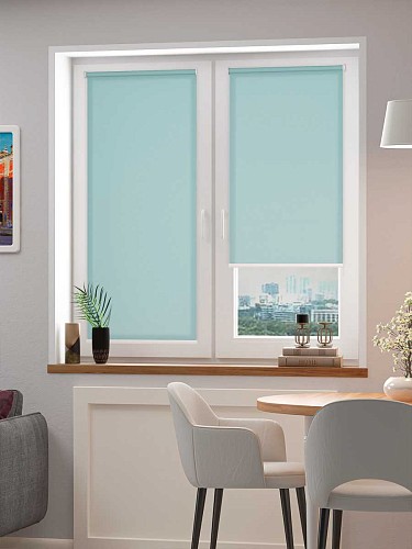 Рулонная штора FixLine BASIC бирюзового цвета - это удобная и практичная штора для декора окон и защиты от солнца. Материал обладает высокими прочностными характеристиками, не выгорает