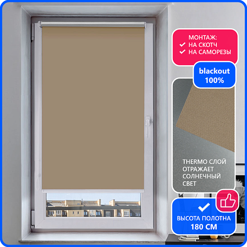 Рулонная штора THERMO Black-Out 70 см, бежевый