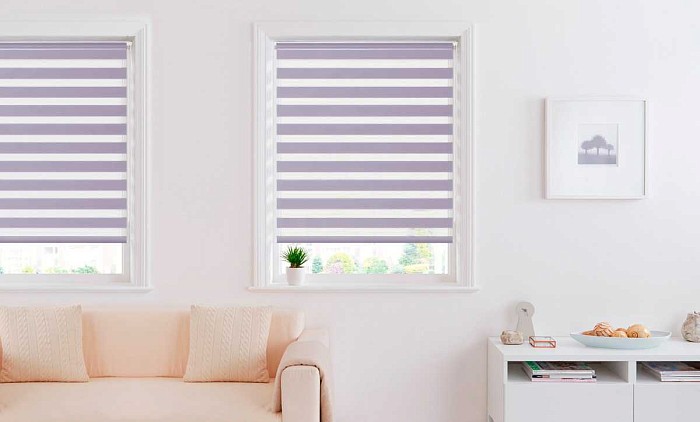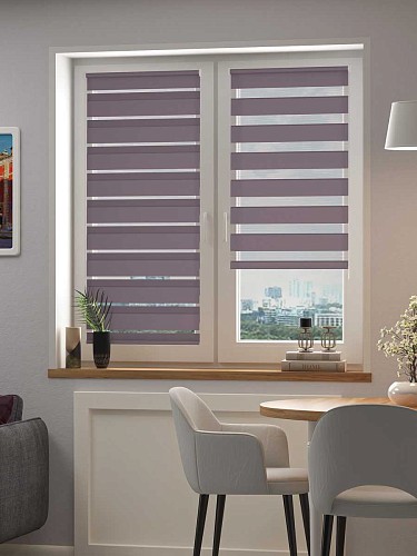 Рулонная штора зебра FixLine BASIC лилового цвета - это удобная и практичная штора для декора окон и защиты от солнца. Материал обладает высокими прочностными характеристиками, не выгорает