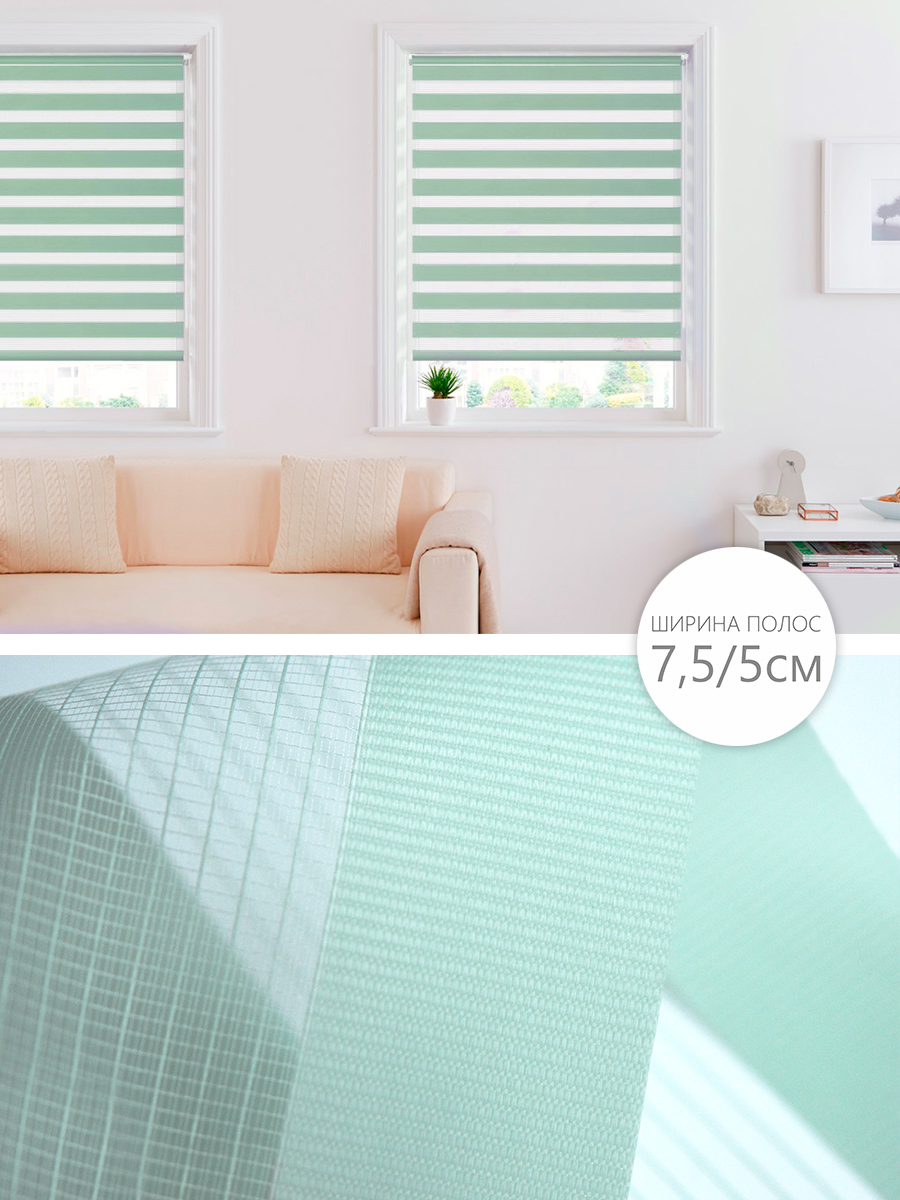 Рулонная штора зебра FixLine BASE 55 см, мятный